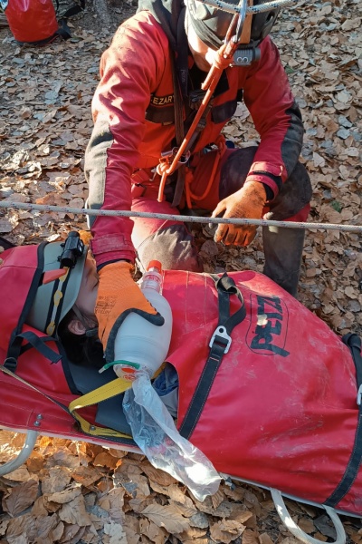 Pierwszy żywy poszkodowany został odnaleziony jako osoba zagubiona w jaskini. Był splątany, wychudzony, bez widocznych obrażeń. Wdrożono zabezpieczenie termiczne, podano płyny oraz leczenie objawowe. W dalszej części działań poszerzono postępowanie o dożylne podanie płynów, cewnikowanie i monitorowanie diurezy. Był to scenariusz wymagający przede wszystkim oceny ogólnego stanu pacjenta, myślenia o wychłodzeniu, odwodnieniu i długotrwałym przebywaniu w trudnym środowisku.